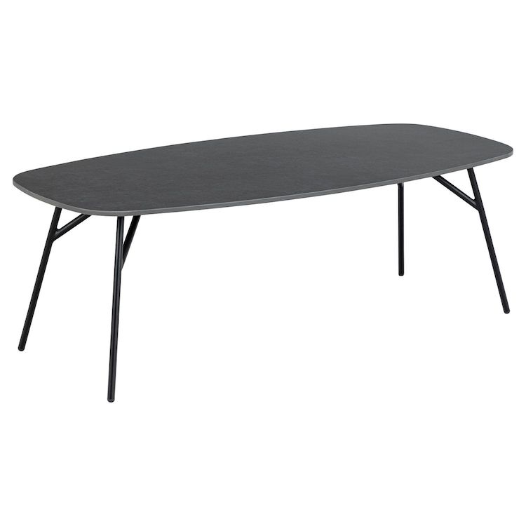 Apportez une touche de modernité à votre salon avec cette table basse rectangulaire aux bords arrondis. Son plateau, résistant à la chaleur et aux rayures, se combine parfaitement avec ses pieds en acier noir, alliant esthétisme et praticité.