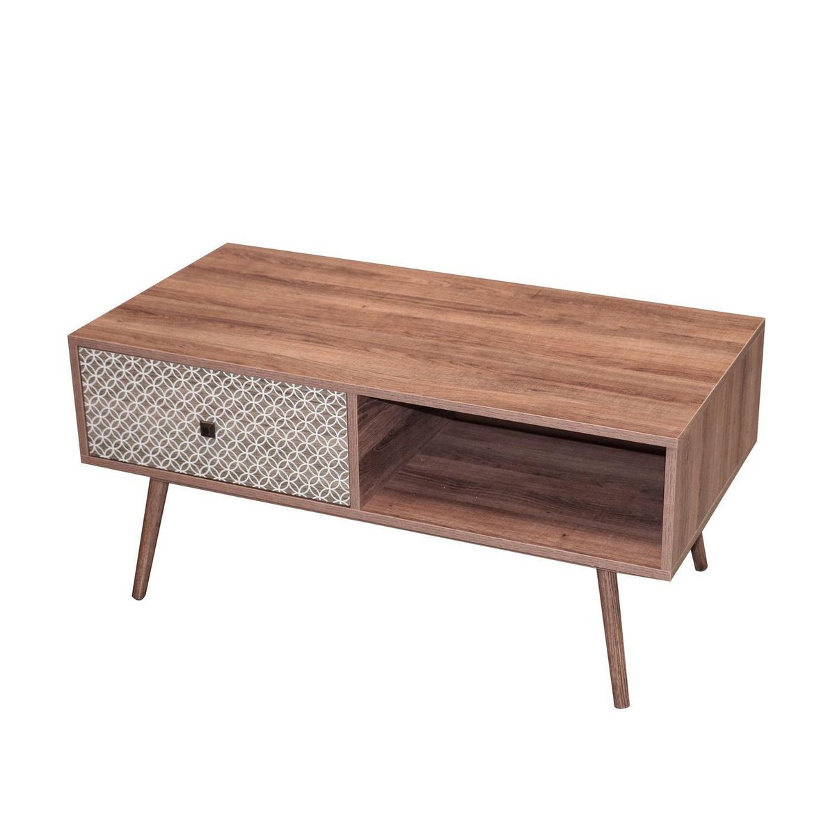 Table basse Baobab en MDF 1 tiroirs et 1 niche ouverte - L.100 cm x H.45,5 cm - Marron