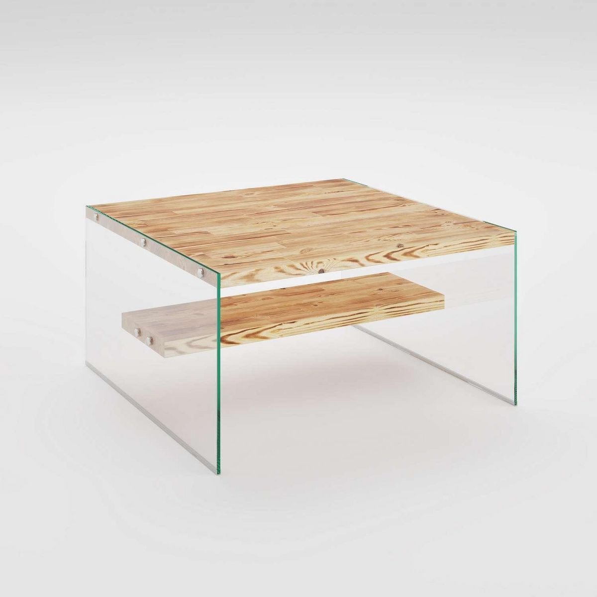 Table basse carrée 1 étagère Crystallia en bois massif - Marron clair
