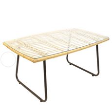 La table basse Surabaya peut être utilisée aussi bien en intérieur, qu'en extérieur. On adore l'alliance de l'acier et du verre FICHE TECHNIQUE- Structure en acier et polyéthylène + Verre trempé- Matériel et notice inclus.- A utiliser en intérieur comme en extérieur.- Facile d'entretien- A monter so