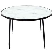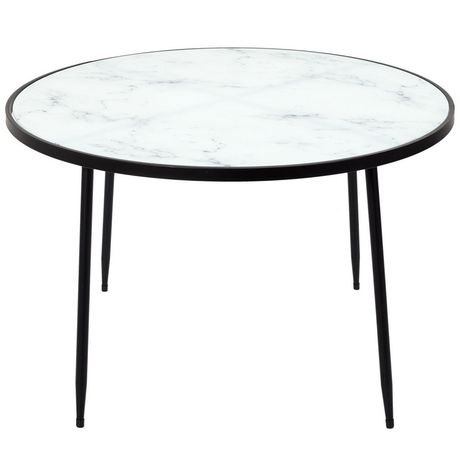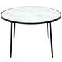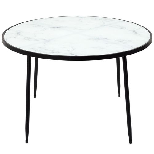 Cette table basse tendance dynamisera votre pièce de vie.FICHE TECHNIQUE- Table basse.- Couleurs : Noir et Blanc.- Gamme : Felicity.- Structure en Métal.- Dessus en Verre trempé.- Détails : Effet Marbre.- A monter soi-même.- notice inscluse.CARACTERISTIQUES TECHNIQUES- Dimensions : Diamètre 75 x Hau