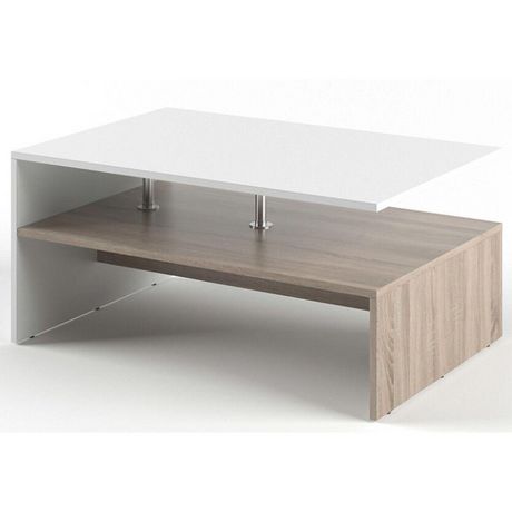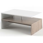 Cette table basse saura vous séduire par son design épuré. Sobre et pratique, elle possède deux plateaux pour exposer vos décorations. On aime le mélange de sa structure blanche et de couleur bois chêne la rendant raffinée et tendance.FICHE TECHNIQUE- Structure de la table basse en MDF 15 mm qualité