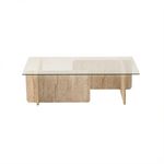 Table basse rectangulaire effet travertin et verre - Beige