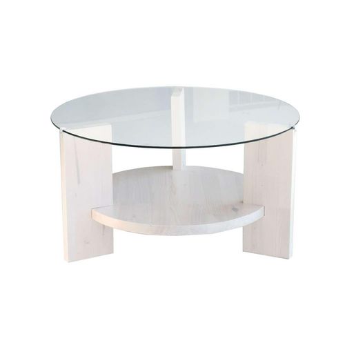 Table basse ronde 1 étagère Auréline en verre et bois - Transparent et Blanc