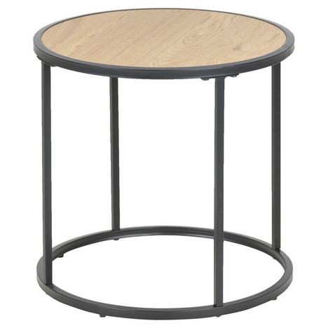 Inspirée du style industriel, cette table d'appoint se distingue par la combinaison d'un aspect chêne sauvage et de métal noir brut. La forme ronde et le corps métallique mince rendent donne un aspect léger. Quel endroit parfait pour une jolie lampe, un bouquet de fleurs ou une pile de livres.