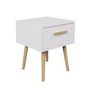 Cette table de chevet donnera un joli coup d'éclat à votre pièce. Sobre et pratique, cette table de chevet est composée d'1 tiroir pour vous permettre de ranger vos affaires. Ses pieds en bois contrastent joliment avec sa structure blanche pour un rendu raffiné et tendance.Le montage est très simple