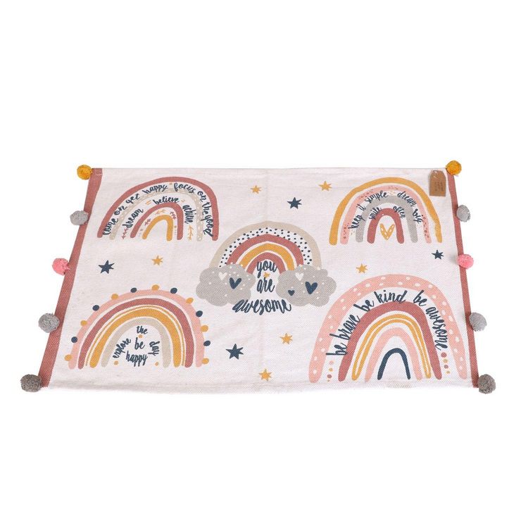Ce tapis sera idéal pour donner un ton chaleureux à la chambre de votre enfant.FICHE TECHNIQUE- Tapis arc-en-ciel- Pour chambre d'enfant- détails Pompons sur 2 bordsCARACTERISTIQUES TECHNIQUES- Dimensions : 60 x 90 cm.- Poids : 0,54 kg