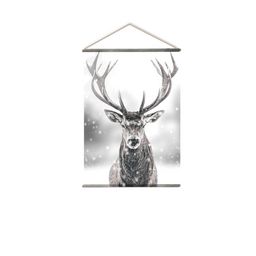 Toile murale imprimée cerf - 90 x 130 cm - Noir et blanc