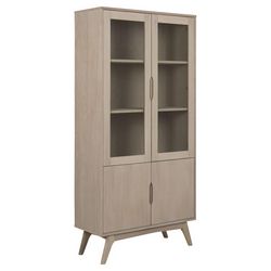 Un altique moderne avec des références traditionnelles. Des lignes épurées, un look minimaliste et un effet chêne pigmenté beige feront ressortir le charme de cette vitrine dans votre intérieur.FICHE TECHNIQUE- Vitrine de salon.- Détails : 4 portes et 4 étagères.- Poignées des portes intégrées.- Des
