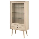 Un altique moderne avec des références traditionnelles. Des lignes épurées, un look minimaliste et un effet chêne pigmenté beige font ressortir le charme de cette vitrine.FICHE TECHNIQUE- Vitrine de salon.- Détail : 2 tiroirs et 3 étagères fermées par une porte vitrée.- Poignées des tiroirs intégrée