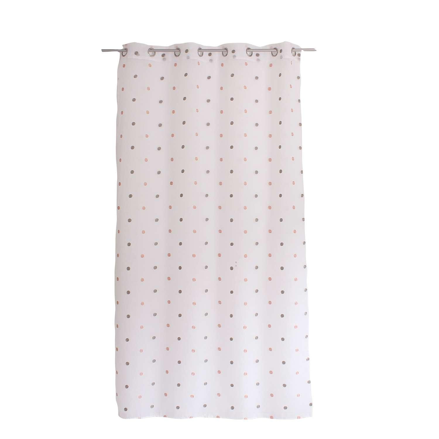 Voilage plumetis - 140 x 240 cm - Gris et rose