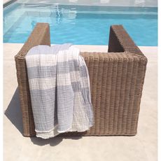 Plaid 150x200 cm en coton gaufré PIENZA naturel et eau de bleu, par Toison d'or