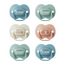 Le lot comprend six sucettes, ce qui est pratique pour avoir toujours des sucettes propres à portée de main. Un stérilisateur réutilisable est souvent inclus dans les packs, permettant de stériliser efficacement les sucettes au micro-ondes et d'éliminer jusqu'à 99,9 % des bactéries.