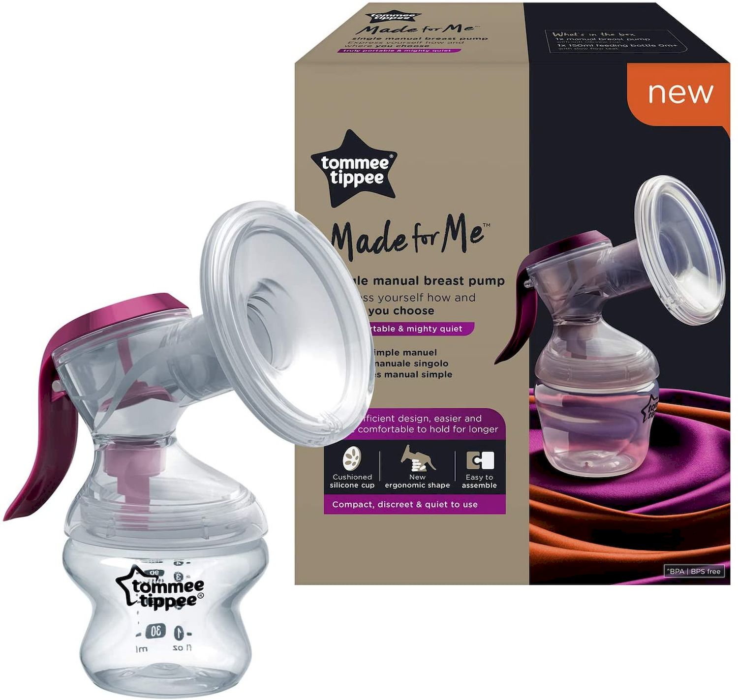 Pour les mamans qui ont besoin de tirer leur lait de manière occasionnelle, Tommee Tippee vous propose ce tire-lait Made for Me. Son entonnoir en silicone doux est pourvu de rainures de massage qui permettront un écoulement rapide et confortable de votre lait. Grâce à sa poignée facile à actionner,