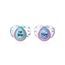 Le lot de 2 sucettes permet une rotation hygiénique et une disponibilité permanente. Leur anneau de préhension facilite la manipulation, même de nuit, et leur étui de protection inclus garantit une conservation stérile en déplacement.