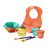 Le kit comprend notamment deux bols, un bavoir ramasse-miettes, une tasse anti-goutte, deux cuillères et des pots de conservation. Ces accessoires sont conçus pour rendre les repas plus pratiques et moins stressants, tout en encourageant l'apprentissage autonome de votre bébé.