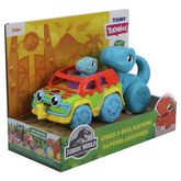 Bébé s’amuse à faire rouler la voiture avec Bébé Raptor confortablement assis à l’intérieur. En faisant avancer Maman Raptor, bébé découvre sa queue bouger d’un côté et de l’autre et se connecte également à l'arrière de la voiture.