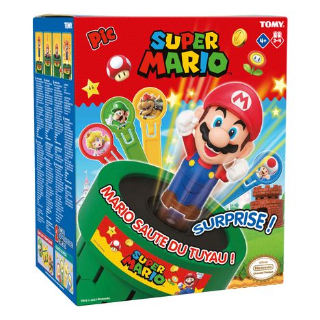 Préparez-vous à embarquer aux côtés de Mario et de ses amis pour une nouvelle aventure passionnante ! Avec trois modes de jeu différents, tout le monde peut s'amuser et participer. Dans le mode de jeu classique, chaque joueur prend son tour pour insérer les bâtonnets dans le tuyau. Quand le bon emplacement est choisi...POP ! Mario surgit du tuyau et le joueur remporte la partie ! Chaque emplacement peut déclencher l'apparition de Mario !