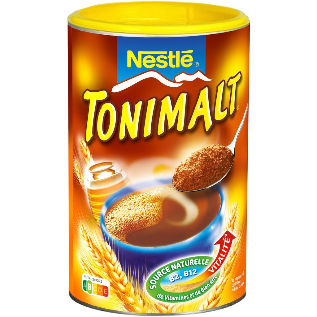 L'alliance savoureuse du malt d'orge, de cacao et d'une pointe de miel pour un petit déjeuner plein de saveurs et de vitalité. TONIMALT est source de vitamines B2 et B12 qui contribuent à aider votre corps à utiliser l'énergie apportée par l'alimentation. Un bol de TONIMALT chaque matin aide à couvrir vos besoins quotidiens en calcium, qui est nécessaire au maintien d'une ossature normale. Préparation en poudre pour boisson instantanée cacaotée et maltée