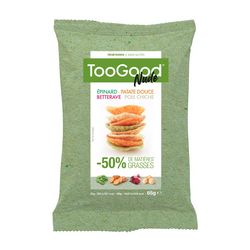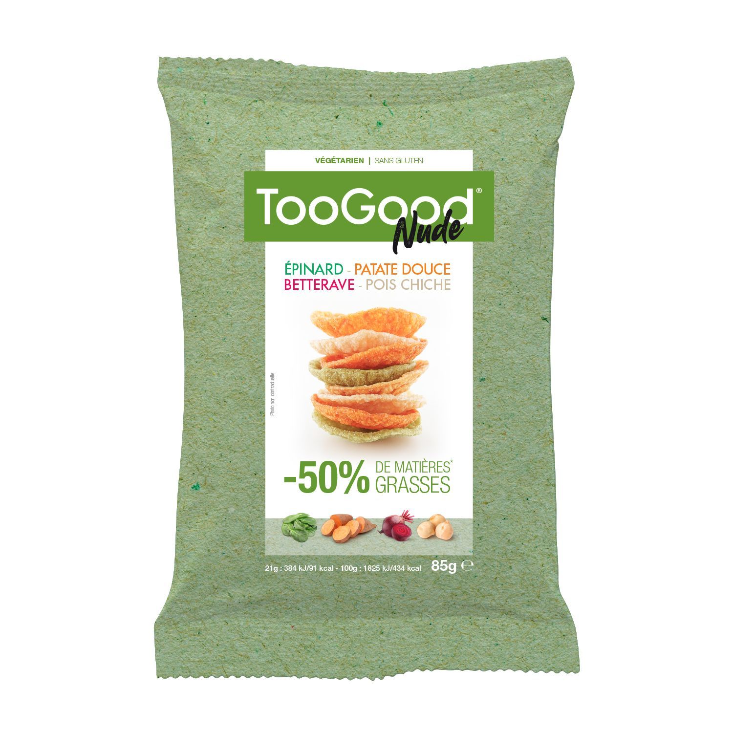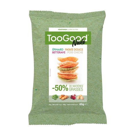 La gamme TooGood Veggie est dépourvue de manteau aromatique superflu, pour ne retrouver que le pois chiche, la patate douce, le haricot noir et la patate douce violette. Soufflé à air chaud, sans friture, ce snack est savoureux et croquant. Car qui a dit que TooGood Veggie n'était pas ultra-gourmand ? Découvrez également la gamme TooGood Soja, pour un apéritif tout aussi déculpabilisant. Disponibles en six parfums : Tomate & Herbes, Barbecue, Sel & Poivre, Paprika, Fromage et Truffe.