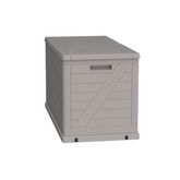 La couleur gris clair et la finition effet bois confèrent à ce coffre un aspect esthétique qui se marie parfaitement avec votre environnement extérieur. Les poignées de transport intégrées facilitent le déplacement du coffre, permettant une flexibilité dans son positionnement.