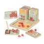 - Matériaux de qualité : planches en bois robustes et fruits en plastique colorés.