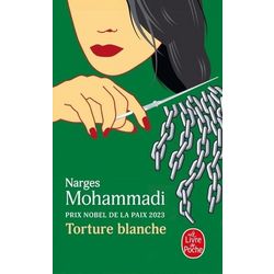 Le 16 novembre 2021, pour la douzième fois de ma vie, j'ai été arrêtée et, pour la quatrième fois, condamnée à être placée en cellule d'isolement. Cette fois, mon chef d'accusation, vous le tenez entre vos mains : c'est ce livre, Torture blanche. On m'enfermera encore. Mais je continuerai de me battre jusqu'à ce que les droits humains et la justice règnent dans mon pays . Figure de la résistance iranienne, Narges Mohammadi, Prix Nobel de la paix 2023, dépeint depuis la prison où elle est incarcérée le tableau terrifiant du traitement infligé par la République islamique aux prisonnières politiques et aux militantes, soumises à la torture blanche , une peine d'isolement total. Les entretiens qu'elle a menés auprès de treize détenues, dans des conditions particulièrement dangereuses, constituent un témoignage de résistance unique et un acte de courage qui s'inscrivent dans le sillage du mouvement Femme, vie, liberté . En documentant le récit de ses camarades, Narges Mohammadi contribue à la transmission des expériences et délivre une leçon à toutes les femmes et tous les hommes qui souhaiteraient résister à la dictature.