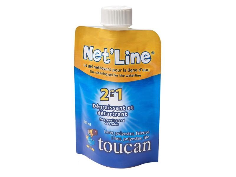 Le nettoyant pour ligne d'eau Net'Line de la marque Toucan est un gel dégraissant et détartrant qui lutte contre le calcaire et les dépôts de gras présents sur la ligne d'eau de votre piscine.Compatible avec les revêtements liner, carrelage, faïence et polyester, il est sous forme de Doy Pack (gourd