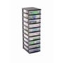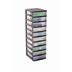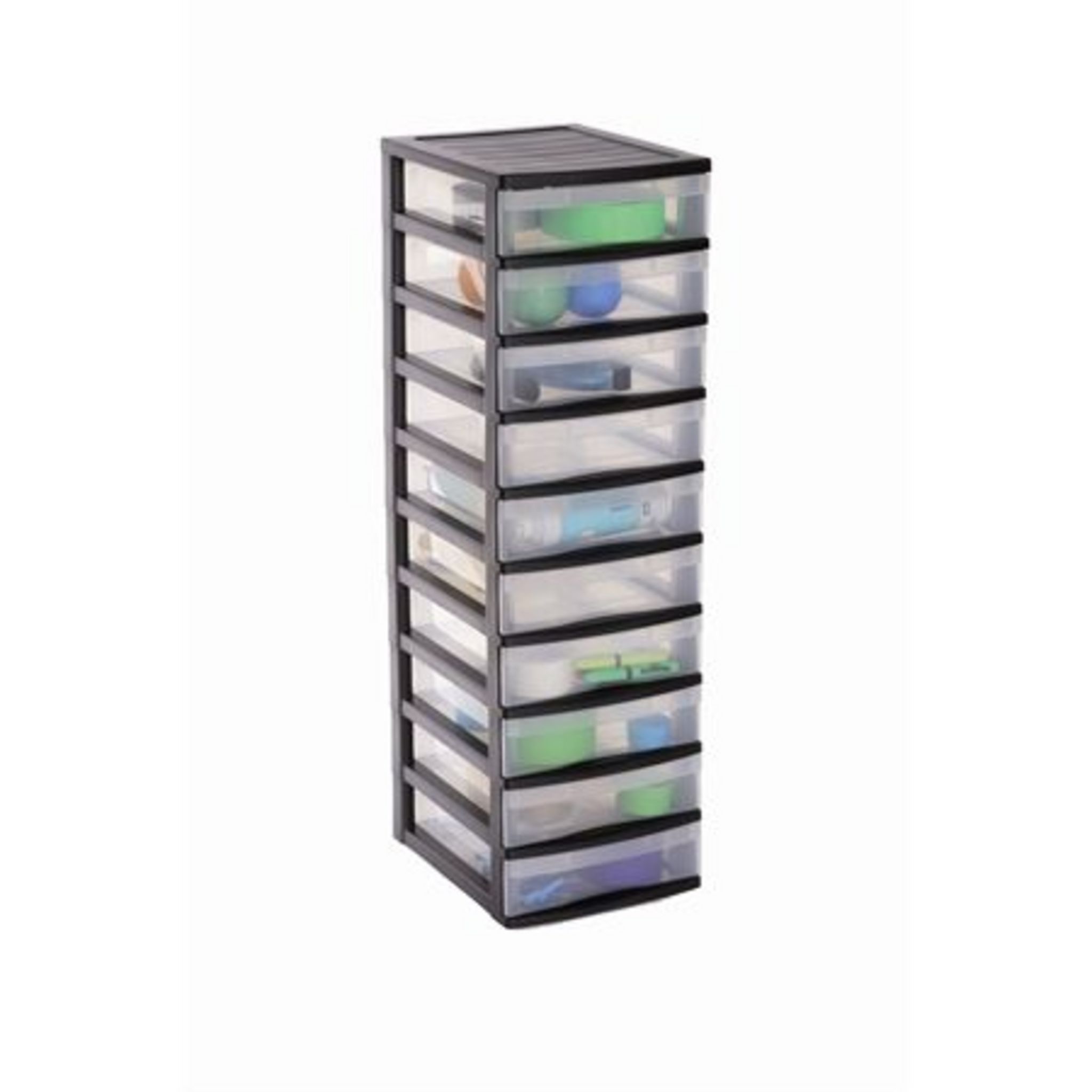 Tour de rangement en plastique constituée par 10 tiroirs de 6L chacun. Dimensions : - Largeur : 38cm - Hauteur : 100cm - Profondeur : 30cm Excellente empilabilité Système d'arrêt à l'ouverture des tiroirs.