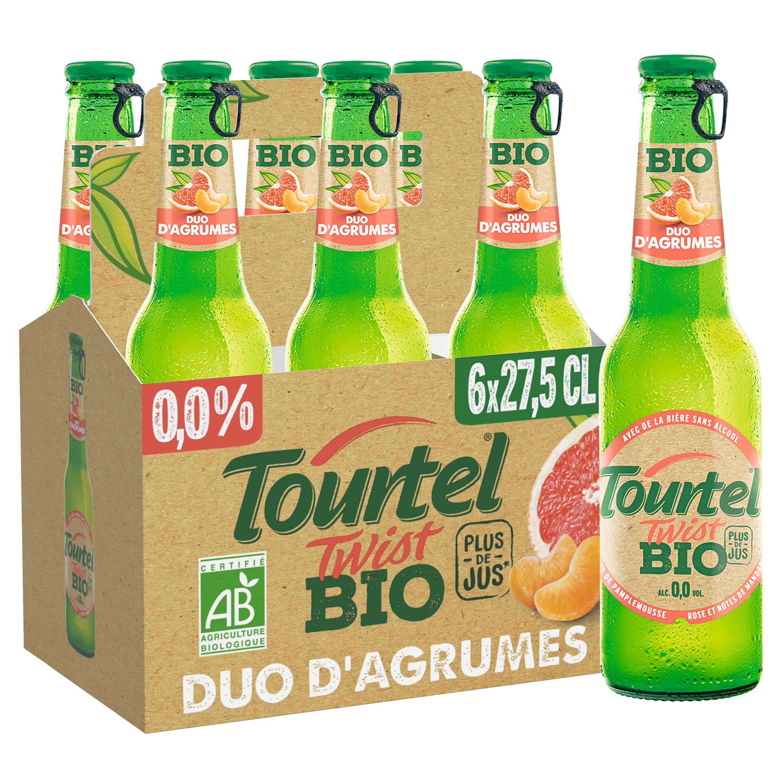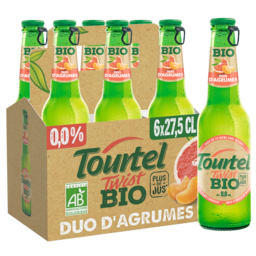 - Bière Tourtel Twist Bio duo d'Agrumes est une boisson rafraichissante et gourmande au jus de pamplemouss rose et aux notes de mandarines. - Tourtel Twist Bio Plus de Jus se déguste en toutes occasions : apéro, pause détente, déjeuner, goûter,… peu importe l’heure et l’endroit tous les prétextes sont bons pour trinquer ! - Présente un bon équilibre en bouche, entre les saveurs sucrées et acides avec une pointe d'amertume. - Boisson gourmande et rafraîchissante. Sa robe de couleur orange pastel et opalescente est réhaussée d'une mousse légère avec de petites bulles fines. - Brassée en Alsace, à Obernai.Quand la gourmandise rencontre le bio, ça donne Tourtel Twist Bio Plus de Jus : la fraicheur d'une Tourtel Twist mais avec encore plus de jus de fruit ! Le goût unique de Tourtel Twist Bio Plus de Jus est garanti sans colorant, sans édulcorant, sans arôme artificiel et sans alcool grâce à la désalcoolisation de la bière. La désalcoolisation a pour but de retirer entièrement l’alcool de la bière et donner ainsi le 0,0% d’alcool caractéristique de Tourtel Twist.
