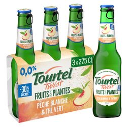 Boisson sans alcool à base de bière au jus de pêches aromatisée pêche blanche et thé vert