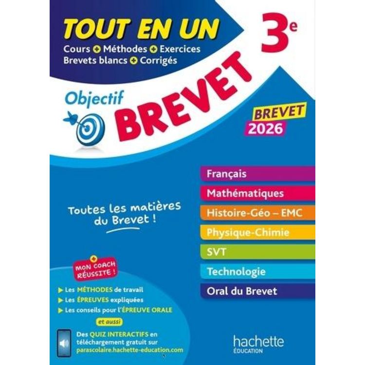 Tout pour préparer vos contrôles, réviser et réussir votre Brevet ! - Les cours complets, dans toutes les matières, pour comprendre et mémoriser l'essentiel. - Plus de 200 exercices de type Brevet, pour bien s'entraîner tout au long de l'année. - Tous les corrigés détaillés, accompagnés de nombreux conseils. - Des annales corrigées, pour se tester en se mettant dans les conditions de l'examen. + DES QUIZ INTERACTIFS à télécharger sur notre site