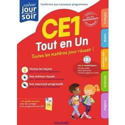 Conçu et recommandé par les enseignants Le tout en un pour réussir son année de CE1 - Conforme aux programmes - Toutes les matières : français, maths, histoire, géographie, EMC, sciences, anglais - Toutes lesleçons avec de nombreux exemples - Desmémos visuels pour retenir l'essentiel - Desexercices