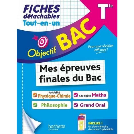 Pour une révision efficace du Bac ! - 170 fiches détachables, claires et visuelles - Tous les résumés de cours, pour mémoriser l'essentiel - Les exercices incontournables du Bac en Maths et en Physique-Chimie, avec leurs corrigés commentés - Tout ce qu'il faut savoir pour bien préparer mon Grand Ora