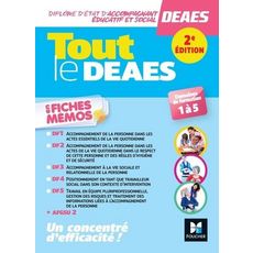 Conforme au décret 2021-1133 du 30 août 2021 et à l'arrêté du 30 août 2021, fusionnant en un parcours plus généraliste les trois spécialités du DEAES. 1 ouvrage pour vous accompagner tout au long de votre formation. L'essentiel du programme en fiches mémos pour réviser et réussir sa formation : 120 fiches avec les notions indispensables, des schémas et des illustrations en couleur, l'AFGSU 2 en fiches mémos