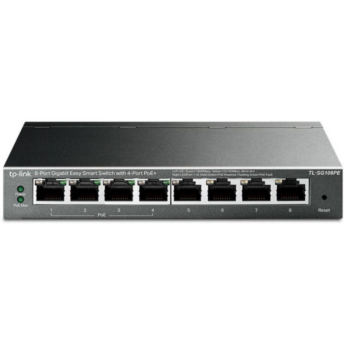 Le TL-SG108PE dispose de huit ports RJ45 10/100/1000 Mbps, offrant une connectivité rapide et fiable. Les quatre ports PoE sont capables de fournir jusqu'à 30W par port, bien que certains modèles soient limités à 15.4W par port selon les spécifications. Le switch est équipé d'une interface web intuitive pour la gestion du trafic, la priorisation des ports, et la configuration des VLAN. Il est également fanless, ce qui le rend silencieux et adapté à un usage continu.