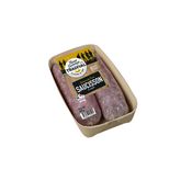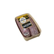 Ingrédients : Ingrédients: Viande de porc (90%),eau, conservateur: E326, sel,sirop de glucose,saccharose,correcteur d'acidité: E262,plantes aromatiques,épices, antioxydant:E301, aromes naturels, boyau naturel de boeuf.