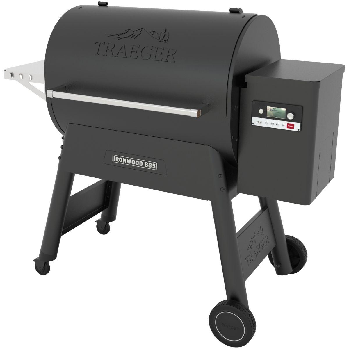 Barbecue pellet IRONWOOD 885 noir sur chariot, grille haute 76x26.5 cm, grille basse 76x48 cm