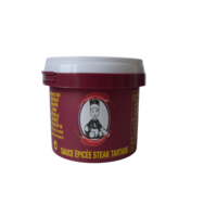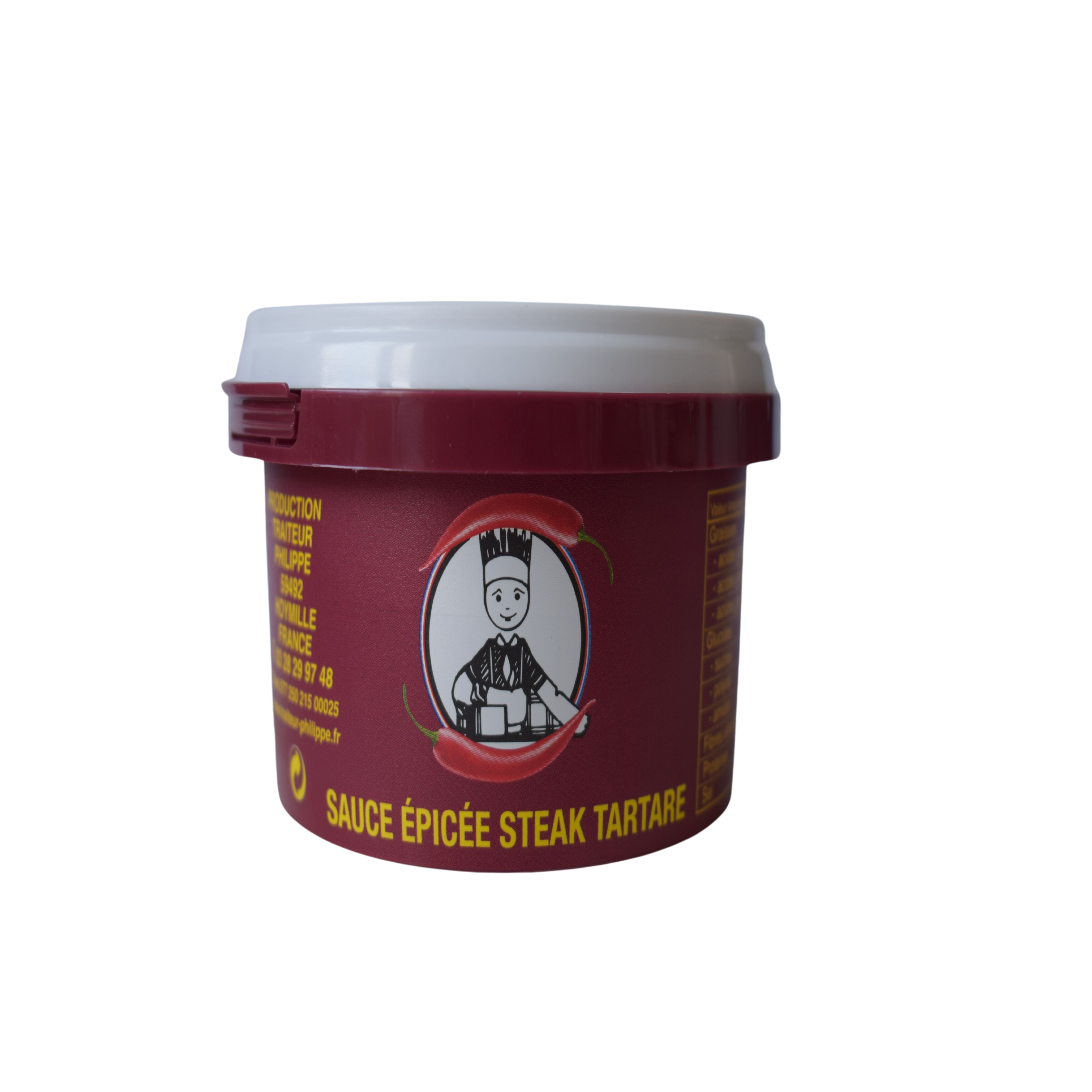 Ingrédients : Huile de colza, eau, jaune d'OEUF, MOUTARDE (eau, graines de MOUTARDE, vinaigre, sel), vinaigre (vinaigre d'alcool), sel, épices (poivre, paprika, piment fort), sauce anglaise (vinaigre de malt, sucre, eau, vinaigre d'alcool, jus de citron à base de concentré, caramel aromatique (sirop de glucose, sucre, eau), miel, extrait de tamarin, sel, épices, arômes naturels), câpres, échalote, colorant: extrait de paprika, épaississant: E415, stabilisant:E412