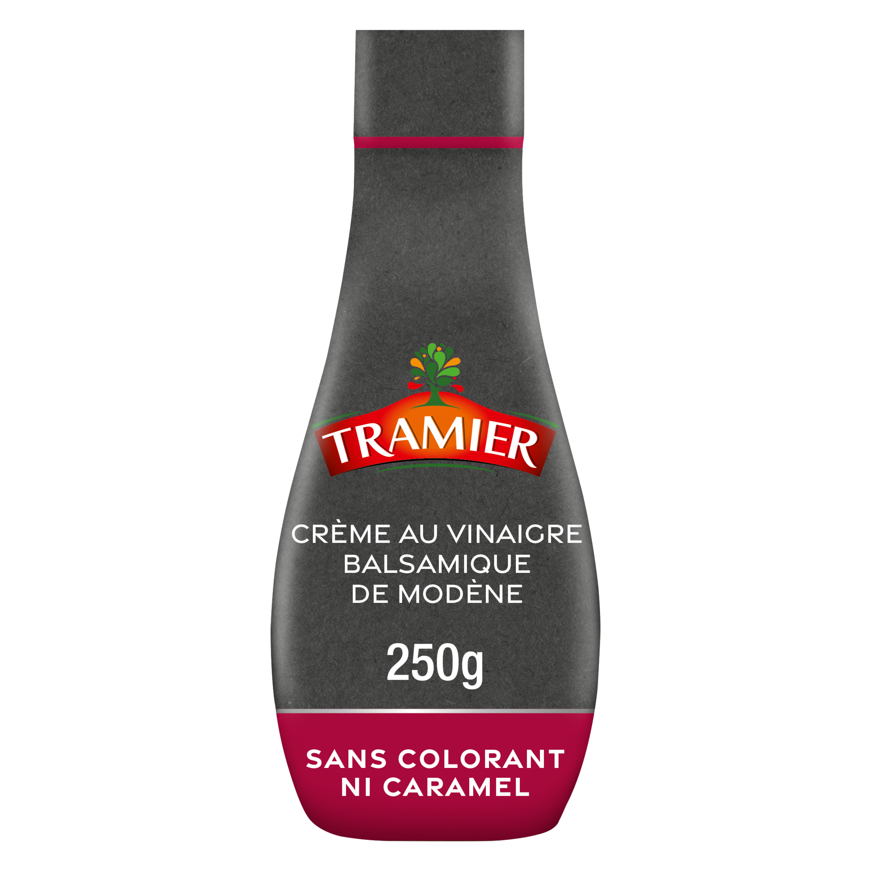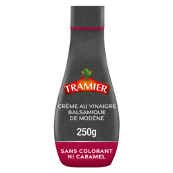 Ingrédients : Moût de raisin concentré, vinaigre balsamique de Modène 39% (vinaigre de vin, moût de raisin cuit), amidon de maïs.