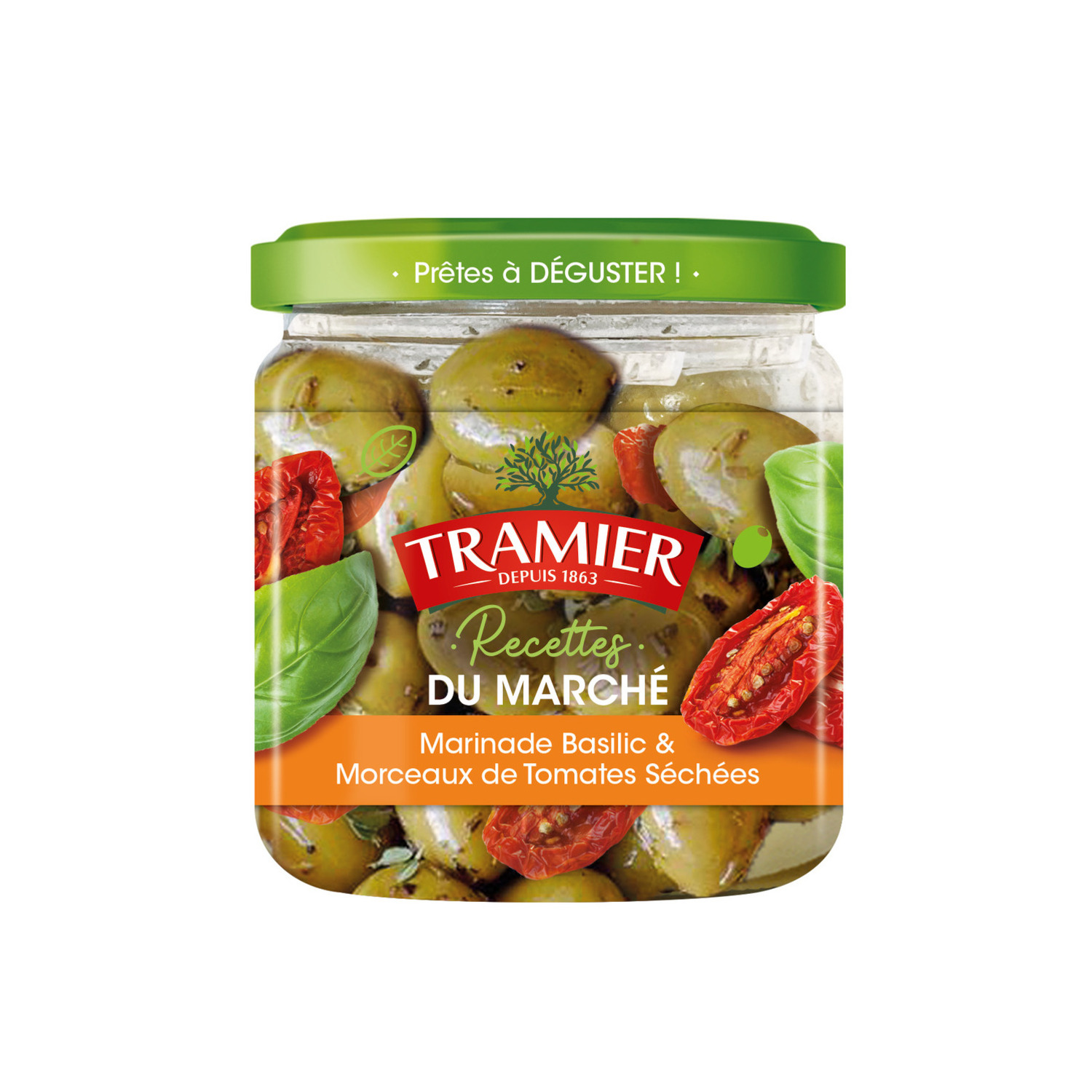 Experte des olives depuis 1863, Tramier vous propose une recette ensoleilllée inspirée des marchés provençaux : de délicieuses olives vertes délicatement marinées avec une touche d’huile, du basilic et de gourmands morceaux de tomates séchées. Plus besoin d’égoutter, elles sont prêtes à déguster !
