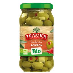 Ces olives vertes farcies aux poivrons bio seront idéales pour vos apéritifs et recettes.
