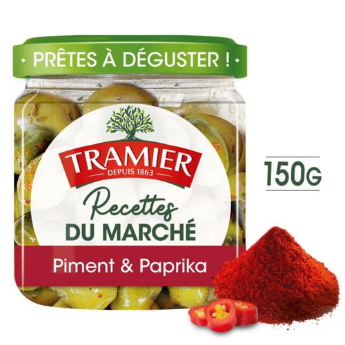 Experte des olives depuis 1863, Tramier vous propose une recette incontournable inspirée des marchés provençaux : de délicieuses olives vertes délicatement marinées avec une touche d’huile, du piment de Cayenne et des petits morceaux de paprika. Plus besoin d’égoutter, elles sont prêtes à déguster !