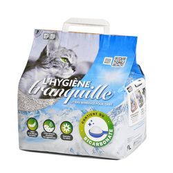 Litière L'HYGIENE TRANQUILLE 9L Litière minérale non-agglomérante, avec des grains alvéolés absorbants, enrichie au bicarbonate.