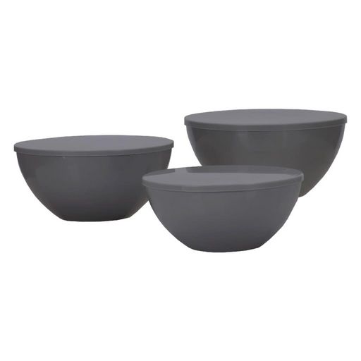 Travellife Bols de camping avec couvercle 3 pcs Palma gris fonce