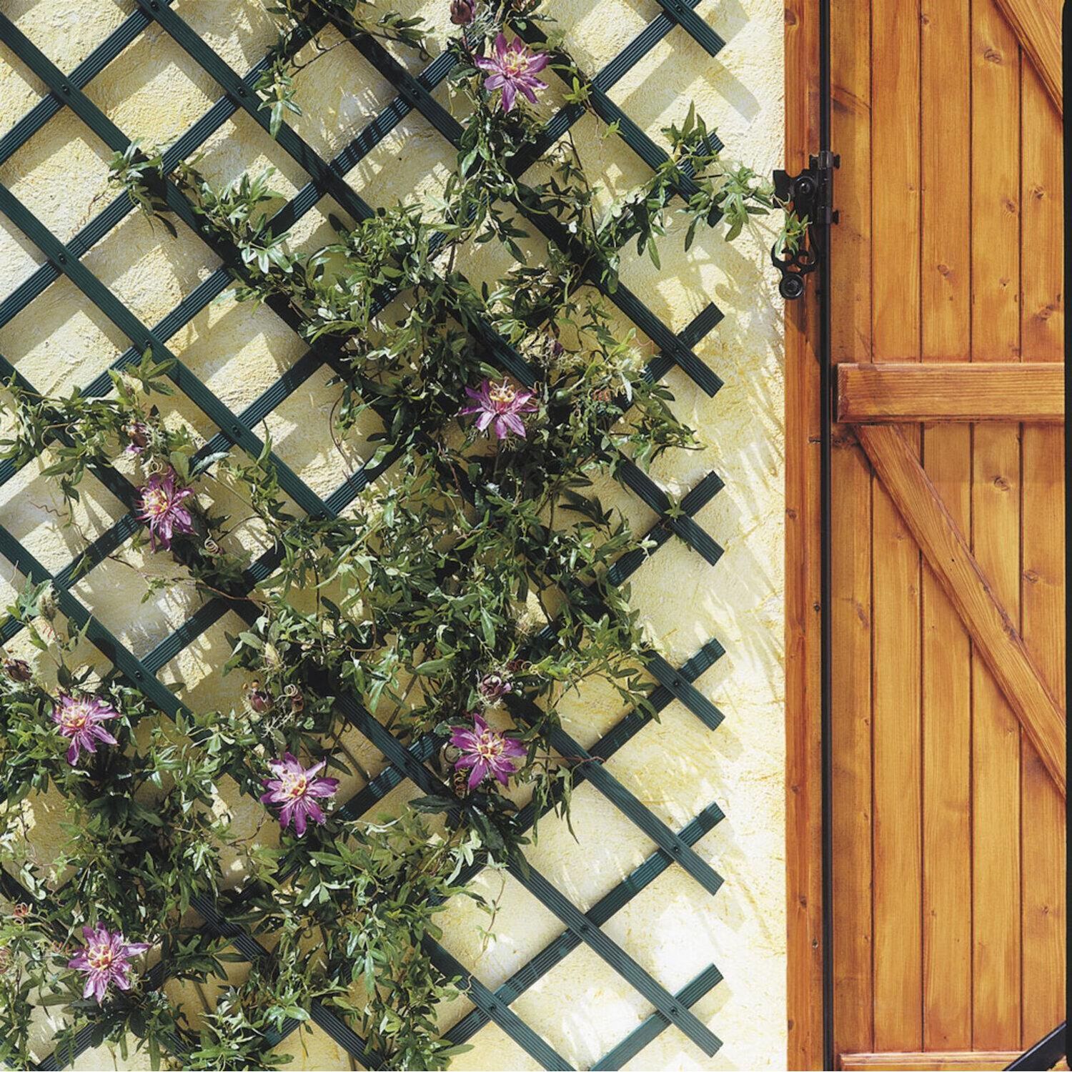 Une solution simple et flexible pour vos plantes grimpantes : Trelliflex. Cette structure, fabriquée en PVC résistant aux UV, va pouvoir être fixée simplement sur un mur.