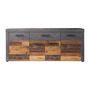 Buffet bas INDY 4 Portes et 1 Tiroir - Mélaminé bois vieilli et gris mat - L 178 x P 40 x H 77 cm