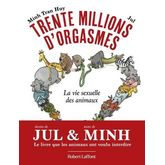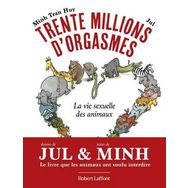 Le livre que les animaux ont voulu interdire ! Grâce aux textes documentés et malicieux de Minh Tran Huy et aux dessins ravageurs de Jul, voici enfin révélée TOUTE la vérité sur la vie sexuelle des animaux. Dans ce livre mêlant connaissance et humour, vous découvrirez que la libellule a un pénis-cuillère, que la cane possède un vagin-labyrinthe, et que le dauphin est le plus grand des obsédés sexuels. Avec Trente millions d'orgasmes , vous ne verrez plus jamais du même oeil chats, marmottes ou girafes, les gracieux flamants roses ou les mignons bonobos... Instructif, délirant et poétique : et si nous y trouvions de l'inspiration ?