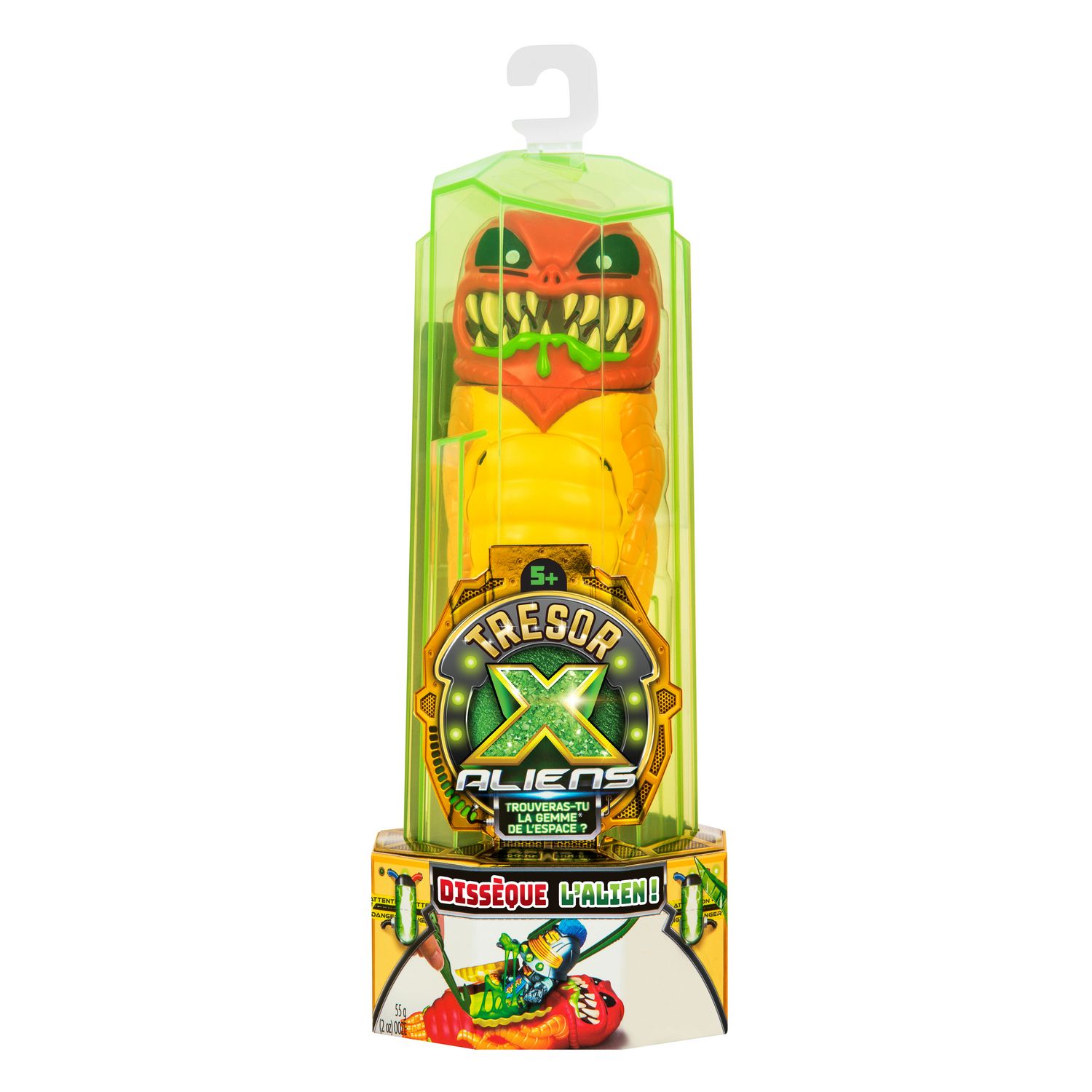 Ce coffret Trésor X Aliens te propose une mission surprenante et... gluante ! Dissèque l'Alien rouge pour découvrir le Chasseur de Trésor emprisonné. À l'aide de l'outil fourni, tu devras découper l'estomac de l'Alien afin de libérer la figurine coincé dans du Slime. Tu trouveras également une arme et peut-être même un joyau de l'espace rare !