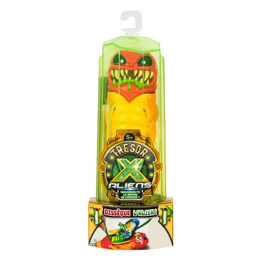 Ce coffret Trésor X Aliens te propose une mission surprenante et... gluante ! Dissèque l'Alien rouge pour découvrir le Chasseur de Trésor emprisonné. À l'aide de l'outil fourni, tu devras découper l'estomac de l'Alien afin de libérer la figurine coincé dans du Slime. Tu trouveras également une arme